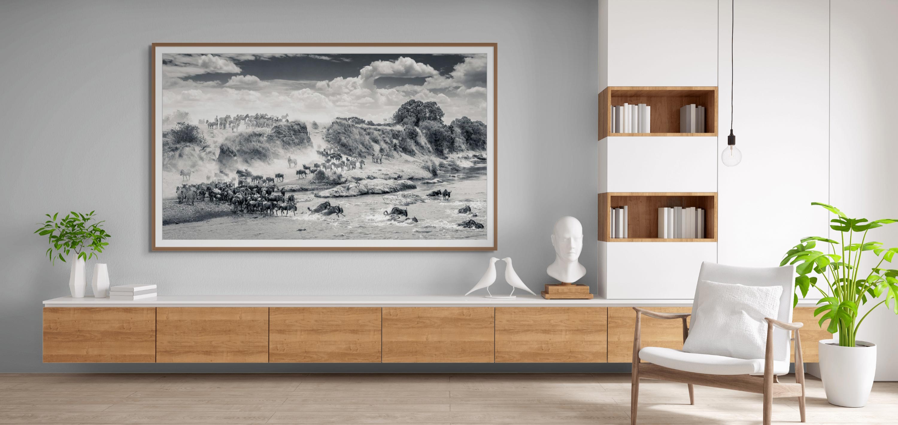 Colour prints: these allow you to express yourself a little more. Either go classic or use complimentary or even contrasting frame colours/mounts, depending on the room styling. For ultra modern, use a thin frame and no mount at all.