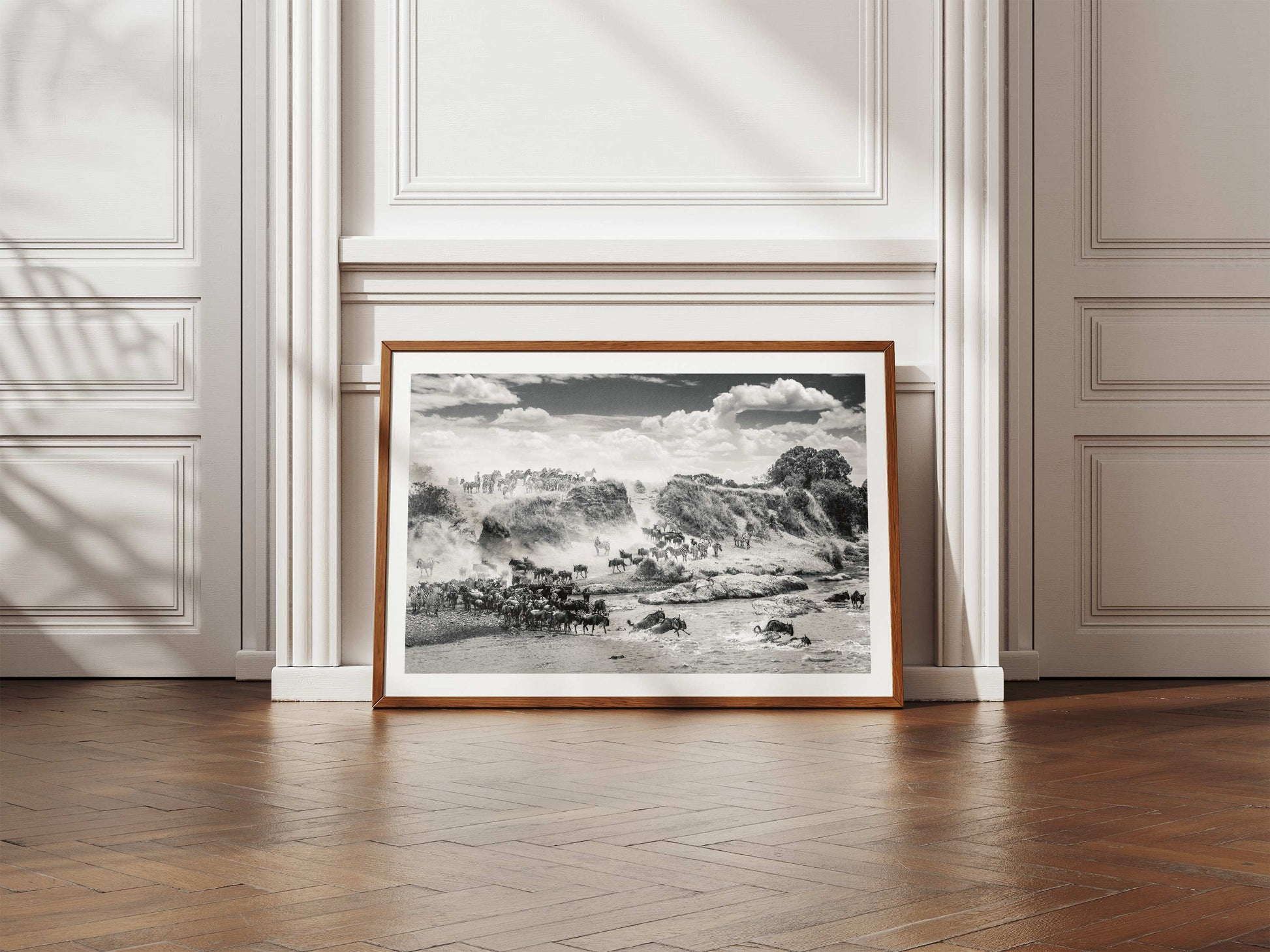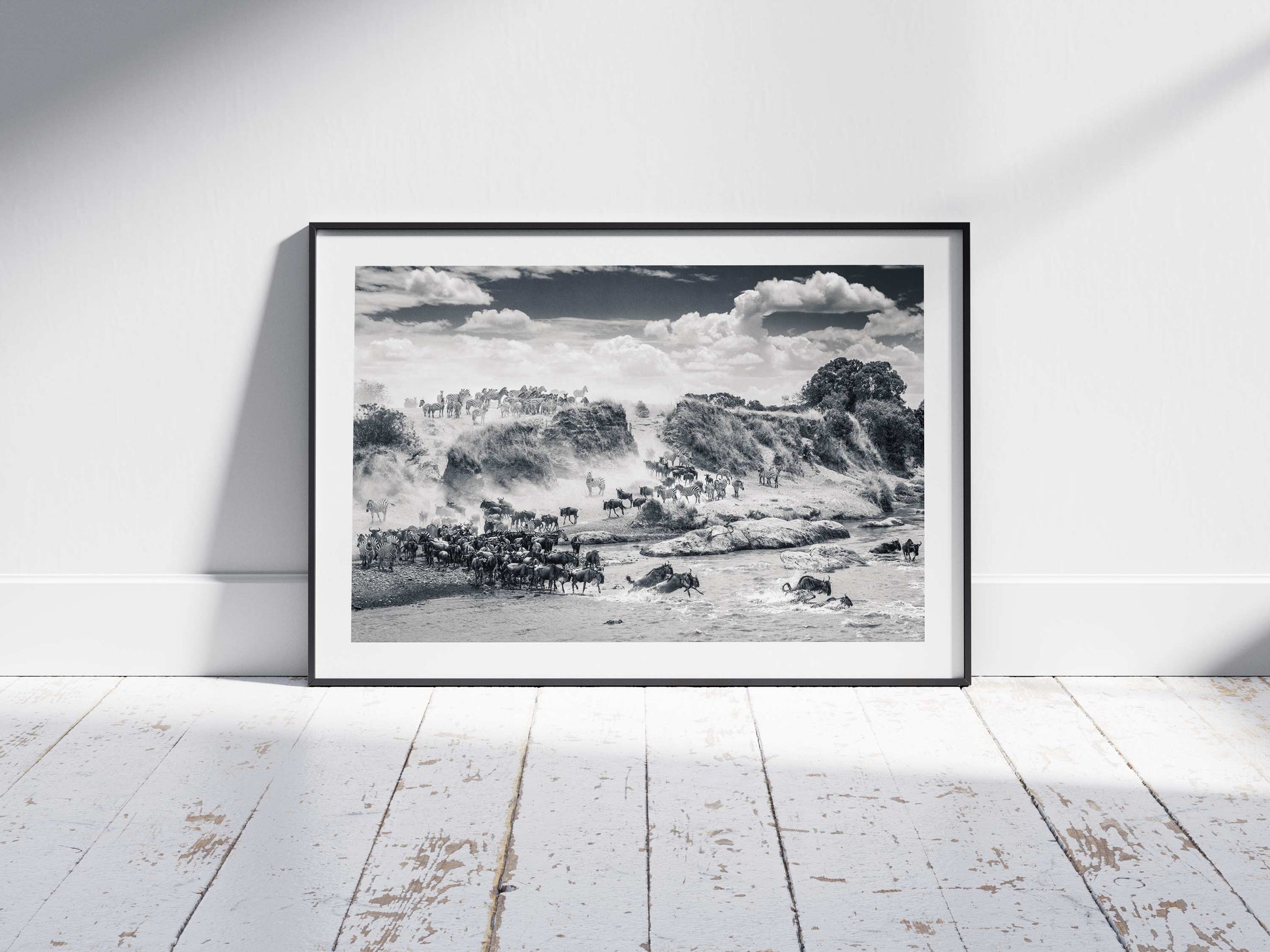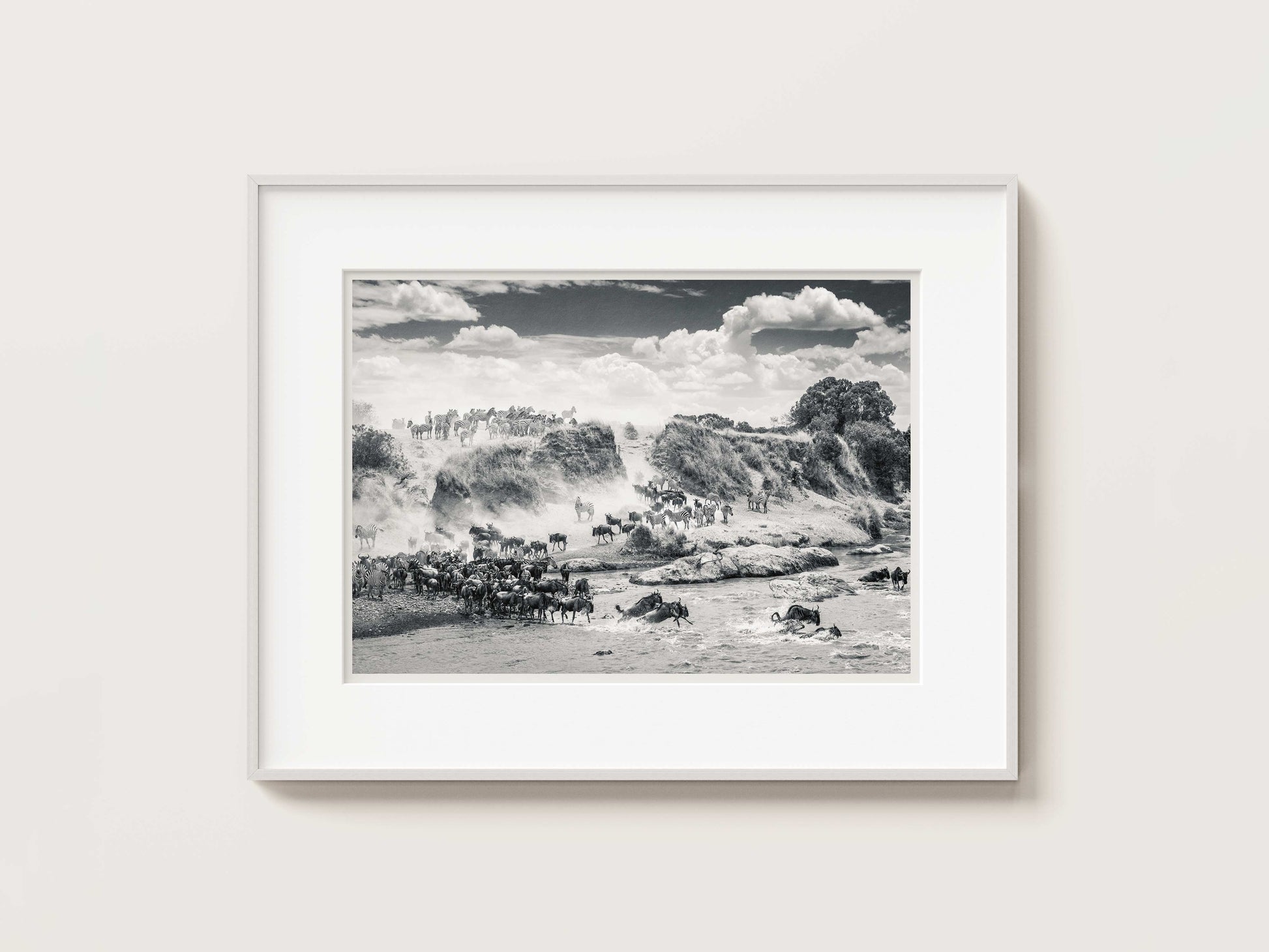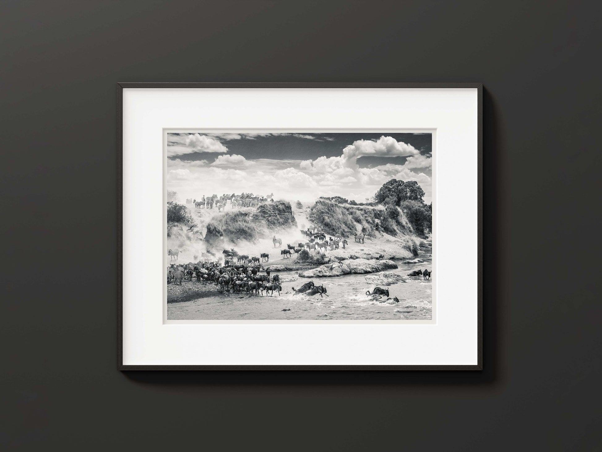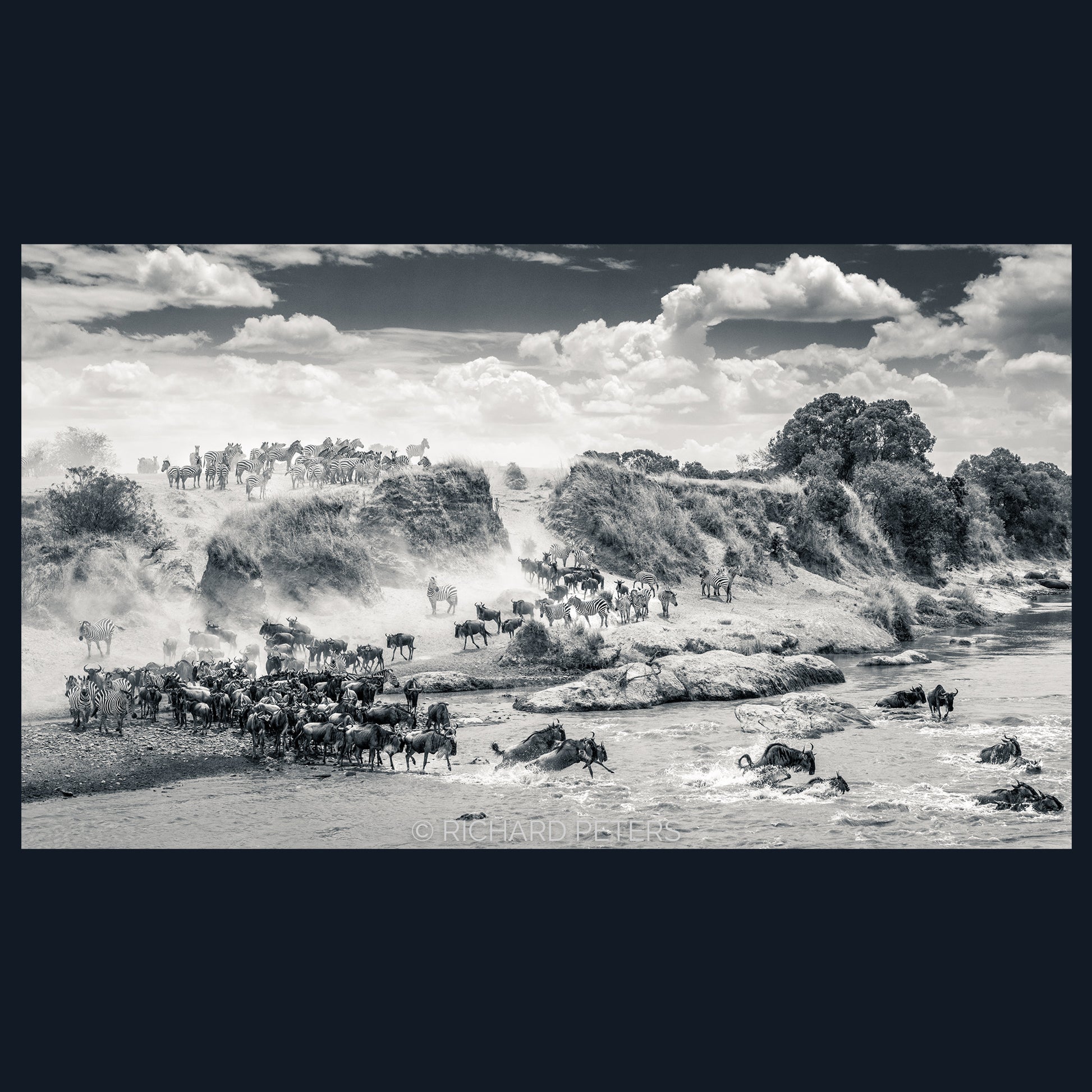 After many crossings witnessed, this timeless image remains Richard's most memorable. The spectacular sight of a wildebeest migration, where often herds of zebra follow in tow, is hard to forget. On this occasion, the animals had been gathering on the far bank right opposite camp. It took almost 2 hours before they were brave enough to make the dangerous crossing. Not all of which were successful. These crossings are one of nature's most incredible events and this highly detailed image, reveals something new every time you view it.